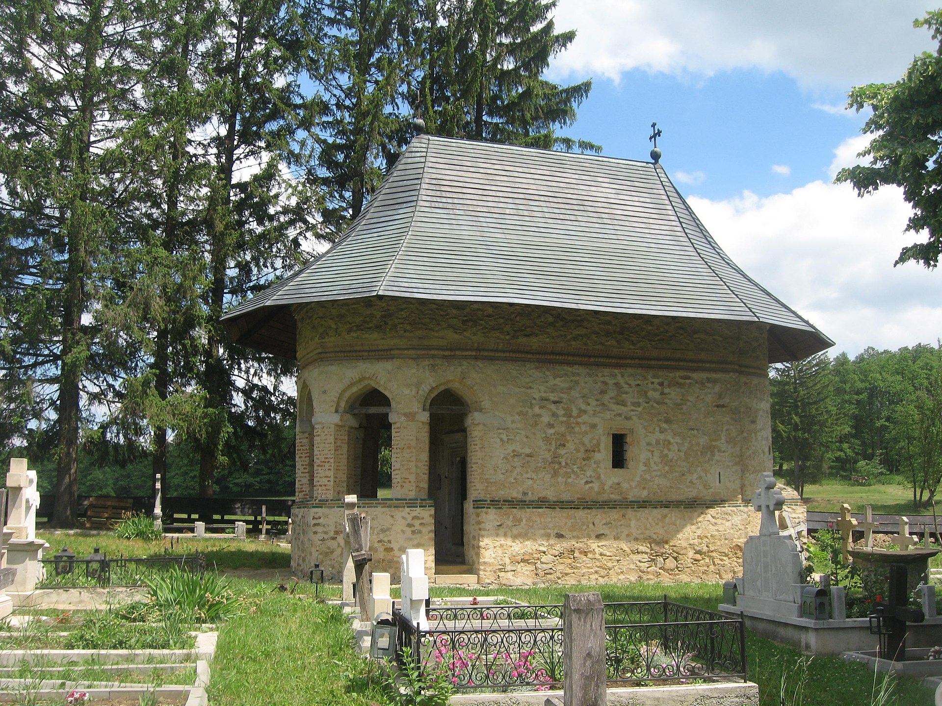 The “Sf. Enoh, Ilie și Ioan Teologul” Church – Dragomirna Mică is an Orthodox place of worship built in the year 1602, as stated in the Slavonic inscription above the entrance door. It is located in the village of Mitocu Dragomirnei, in the commune of the same name (currently part of Suceava County), and was founded by Metropolitan Anastasie Crimca of Moldova. Originally, this small place of worship served as the wooden hermitage’s church, surrounded by modest monastic cells. After the construction of the larger church, the land around the small chapel was turned into a cemetery.